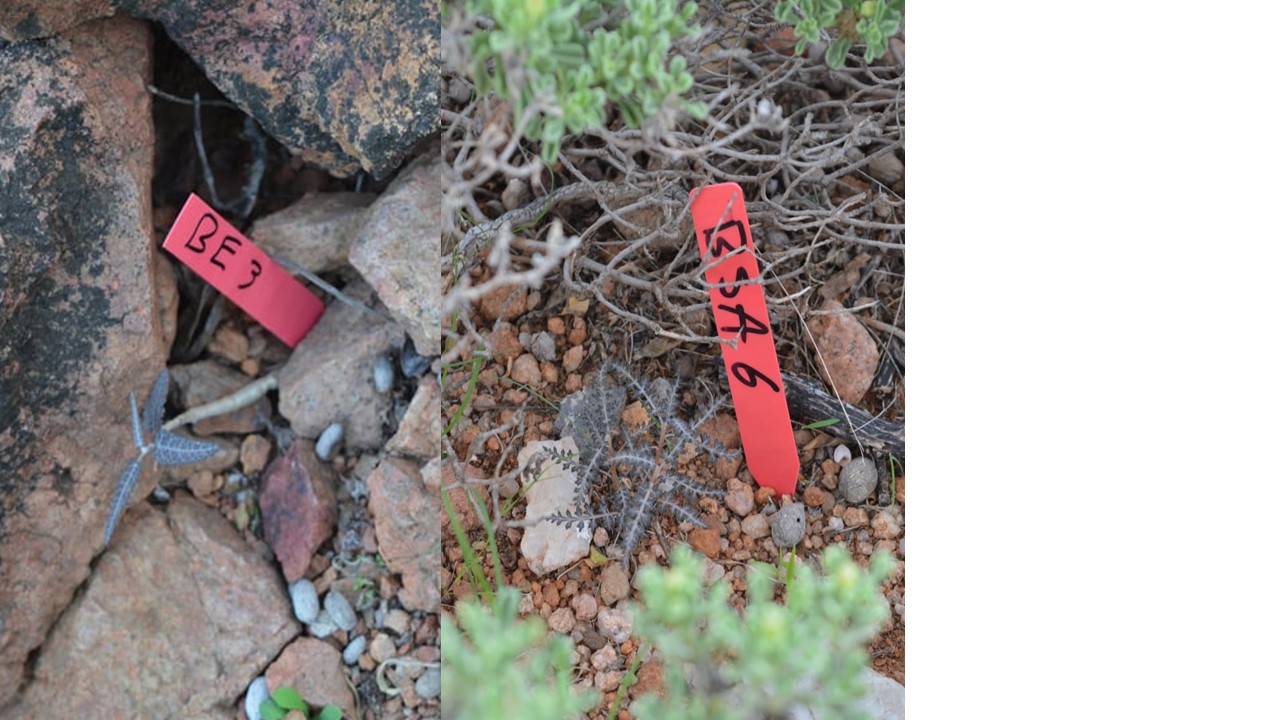 The assessment of plots for regeneration had to be done by a local team. In selected areas for reforestation (Shata – Boswellia socotrana subsp. aspleniifolia, Diburak – Boswellia elongata) a survey was conducted to find seedlings from natural regeneration. Exclosure experiment for evaluation of natural regeneration development was prepared. Two plots of size 50 x 50 m are compared in each area, one fenced, second unprotected against grazing. All seedlings found were labelled and measured (height in cm, stem diameter by the ground in mm and number of leaves). The measurement will be repeated in a one-month interval.