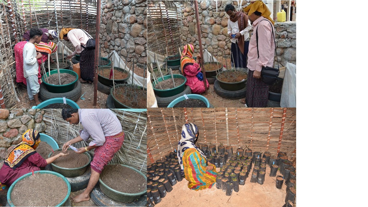 Compared to the project proposal, we decided to establish only one forest nursery instead of several smaller ones in each reforestation locality. This strategy was chosen because it is easier to organize such activity with remote management.  One nursery for all species and localities needs a good organisation of work, especially careful labelling. The seeds were sawn to the large pots with a special substrate (mixed soil from Boswellia localities and sand), labelled by the species and locality and placed under shelter. The seedlings were dotted into plastic bags after a few weeks of development. In these bags, the plants will be transported to the sites designated for reforestation. The seedlings will always be planted in the same location from which the seeds came.