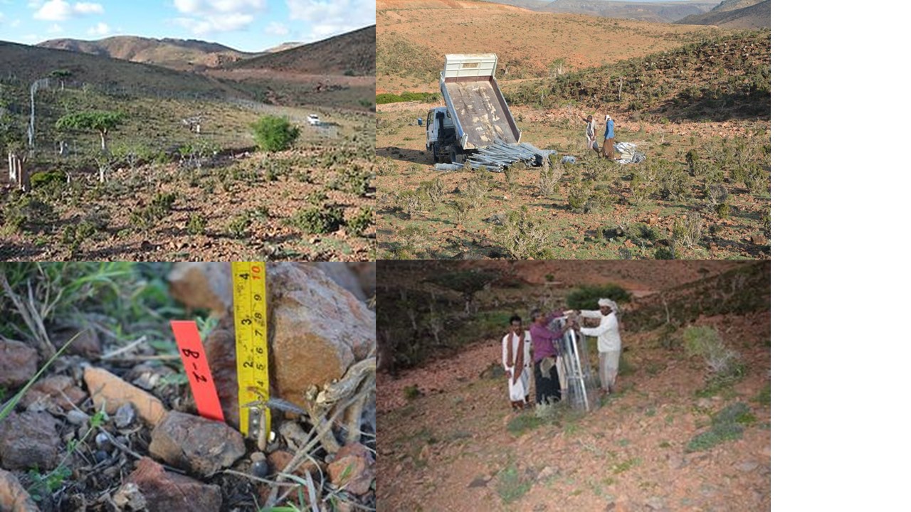 In Diburak, 50 x 50 m fenced areas were built for regeneration of Boswellia elongata in November 2020. Inside fenced areas, adult trees able to produce seeds for natural regeneration can be found. Seedlings inside were labelled. Moreover, seedlings from natural regeneration outside the fenced areas were protected by strong individual protection.