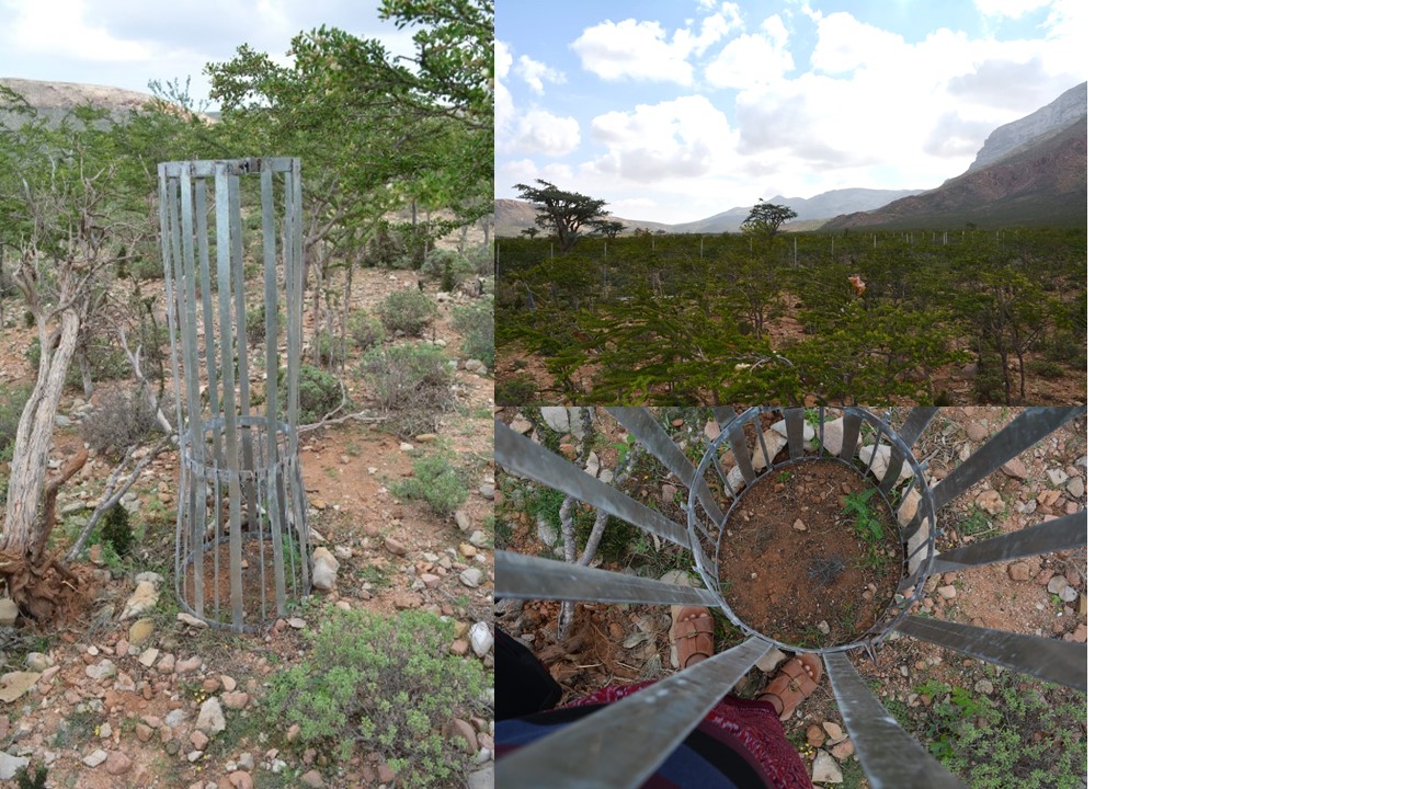 In Shata, 50 x 50 m fenced areas were built for regeneration of Boswellia socotrana subsp. aspleniifolia in December 2020. Inside fenced areas, adult trees able to produce seeds for natural regeneration can be found. Seedlings inside were labelled. Moreover, seedlings from natural regeneration outside the fenced areas were protected by strong individual protection.